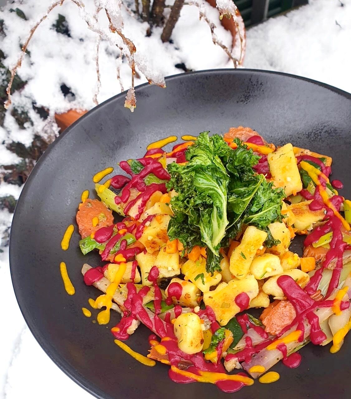 an Randensauce und Wintergemüse