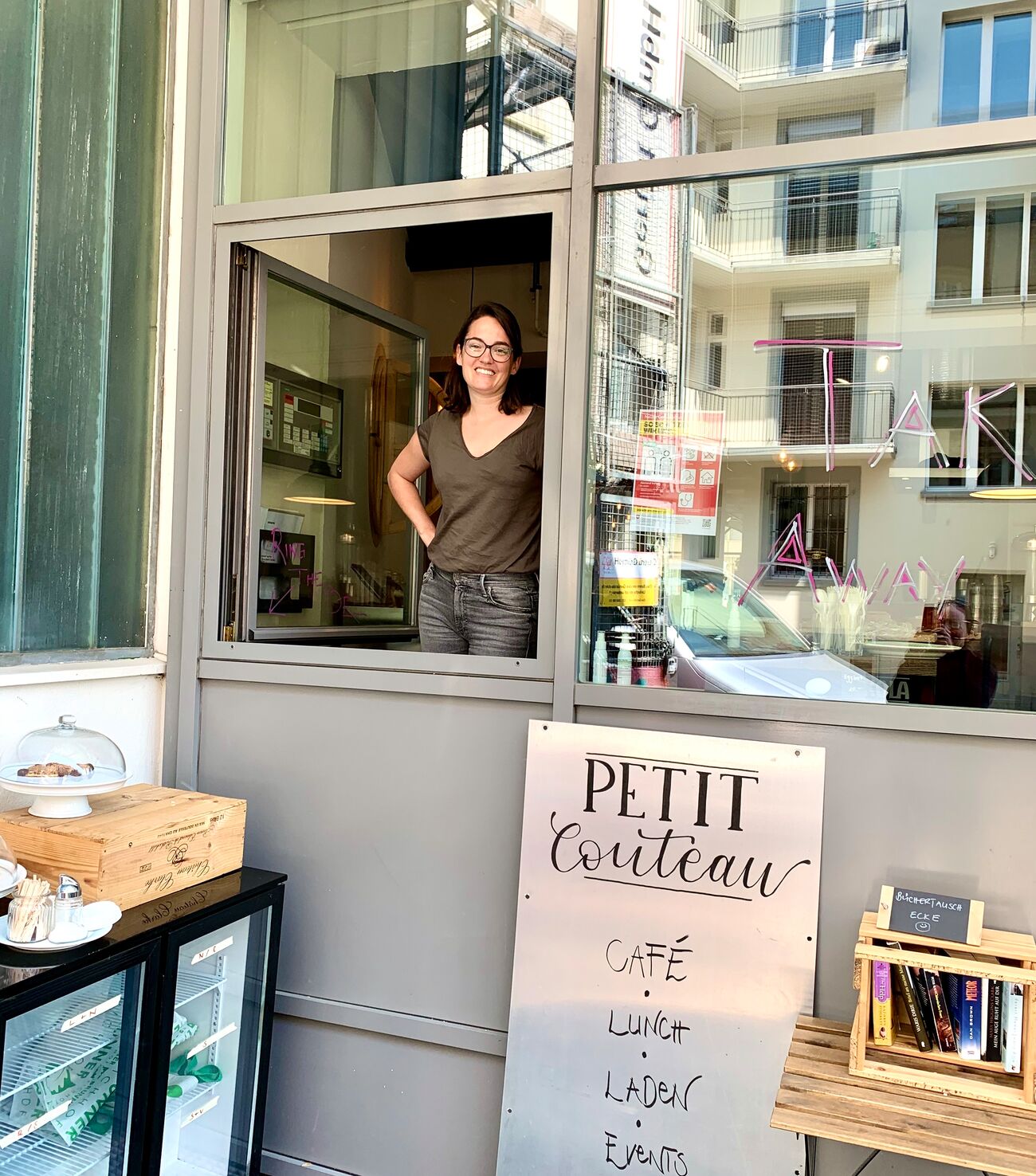 «Seit Ende März 2020 haben wir im Innenhof ein Takeaway-Fenster eröffnet! Dort gibt’s Lunch, Kaffee und Kuchen zum Abholen. Das richtig Schöne an diesem Fenster sind die Gespräche mit den Menschen. Sozialer Austausch auf Distanz ist einfach wichtig in dieser Zeit! Zudem bereiten wir uns auf den Sommer vor: Ein neues Sommerkonzept ist in Erarbeitung, wir sind kreativ und tüfteln an neuen Mittagsideen wie den superfeinen «grilled sandwiches», wir brauen eigenes Gingerbeer, sammeln Bärlauch – und haben bereits 14 kg Pesto zubereitet; wir restaurieren, faulenzen, geniessen und zwischendurch machen wir uns auch etwas Sorgen… Doch wir stecken den Kopf nicht in den Sand und machen im Rahmen des Möglichen einfach weiter», erzählt uns Fabienne Messerli, Gastgeberin im Petit Couteau.